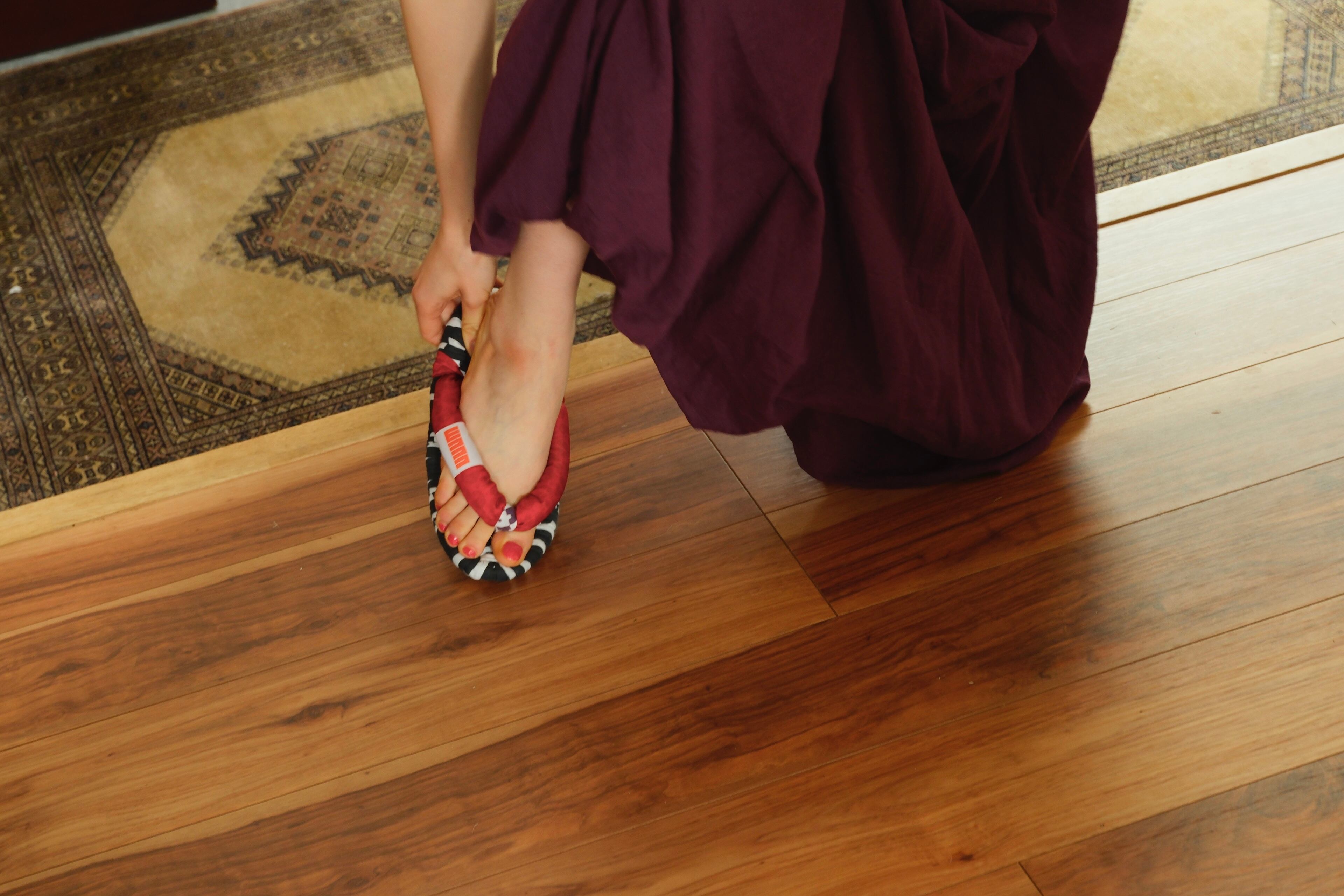 布ぞうりは柔らかな布でできているため、床を傷つけずに安心して歩き回ることができます。また、しっかり足指で掴んで履くためパタパタせず、足音が階下に響く心配もありません。